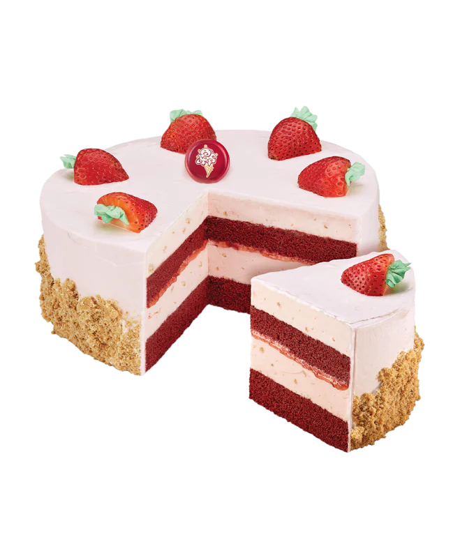 Layers of moist Red Velvet Cake, Strawberry Puree and Strawberry Ice Cream with Graham Cracker Pie Crust wrapped in fluffy Strawberry Frosting **This item is ready for you to pick up which means we cannot make any changes or substitutions.