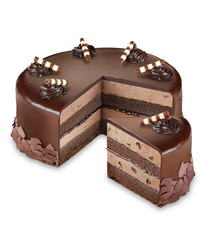 Layers of moist Devil's Food Cake, Fudge and Chocolate Ice Cream with Chocolate Shavings wrapped in rich Fudge Ganache **This item is ready for you to pick up which means we cannot make any changes or substitutions.